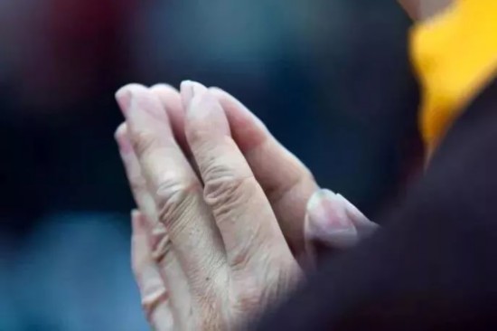 双手合十,跟随师父的脚步,放下心中一切烦恼,走入智慧之地。