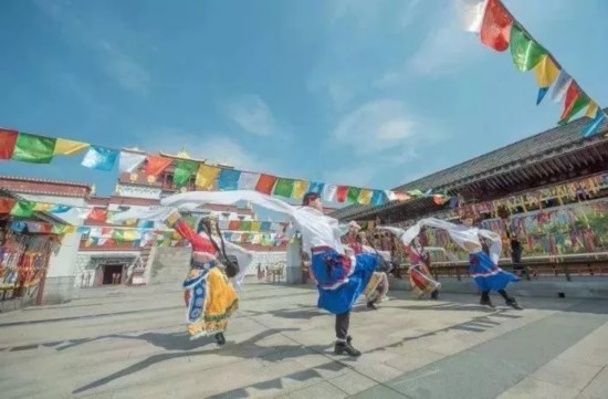 结合五印坛城的文化特色,演员们通过曼妙的舞姿,为游客送去来自雪域高原的祝福。