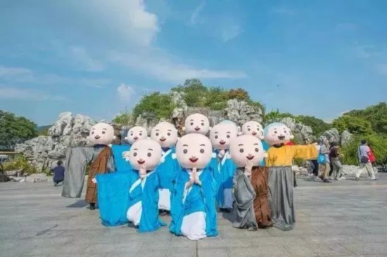 春节期间,灵山胜境迎来一群福星萌宝,他们巡游在景区中,为游客带来新年欢乐与祝福。