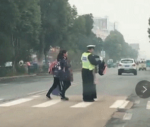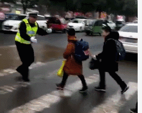为保障学生们安全通行,每天早上6:30侍东亮都会提前到岗,指挥交通、疏导车辆。中午、下午放学时,他都要悉心照顾孩子们安全通过马路。