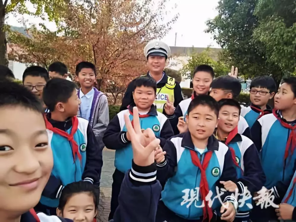 孩子们非常喜欢这位和蔼可亲的交通辅警叔叔,只要侍东亮一走近,便会自发地围着他,摸摸他的肚子,拉拉他的手,搂着侍东亮讲学校里的趣闻。