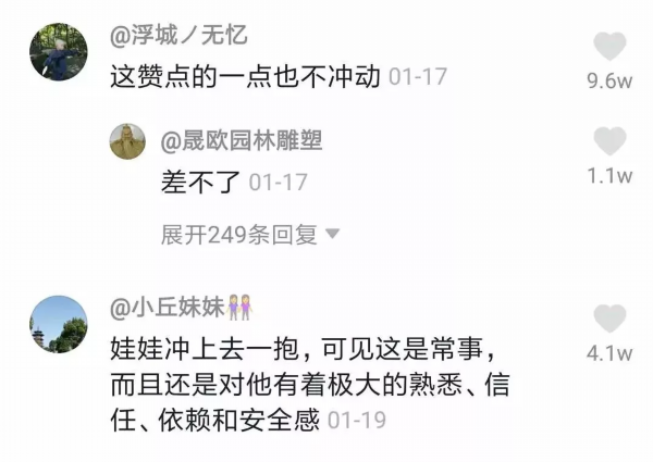 @ 小***妹:娃娃冲上去一抱可见这是常事,而且还是对他有着极大的熟悉、信任、依赖和安全感。