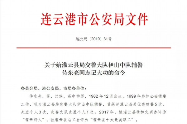 “奔跑哥”侍东亮,其实是灌云县公安局交警大队一中队的一名辅警。