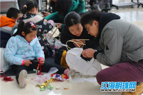 “正月里来是新春,家家户户挂红灯……”今天是大年初六,南通中华慈善博物馆里格外热闹,在如皋扎灯艺人沈祖兵的指导下,20多个孩子和家长围坐在一起学扎兔子灯,体验非遗手工的文化魅力。