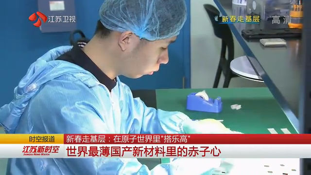 江苏台记者糜梦逸:这种实验操作到底需要多么精细呢,记者也来尝试一下,在实验室工作人员的指导下,要把毫米级厚度的石墨,剥离成只有万分之一头发丝厚度的薄片。