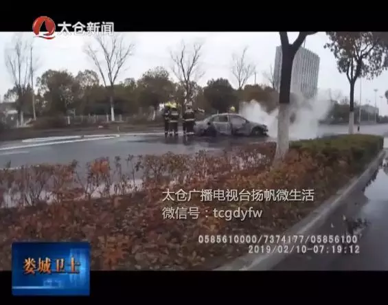 当时正好坐在这里,就是一辆车,冒出火苗,我马上拿灭火器跑到那边十几秒,车已经没办法救了。大火瞬间淹没了