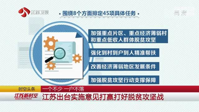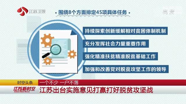 近日,江苏省委省政府正式发布《关于打赢打好脱贫攻坚战三年行动的实施意见》,排定45项具体任务,以更有力的行动、更扎实的工作打赢打好脱贫攻坚战,确保全面小康建设路上,一个不能少,一户不能落。