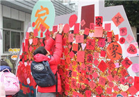 五星实小的校园一早便热闹起来:四扇喜庆的红色主题墙迎门而立,两边的桂花树上挂满了红色灯笼。孩子们走进迎新大门,在主题墙上挂上新年心愿。围绕活动主题“新春乐、人和美、国昌盛”,孩子们在校园内玩起了“快闪”表演,《新年到》《数花灯》《我和我的祖国》……一首首激情澎湃的歌曲献礼中华人民共和国成立70周年。