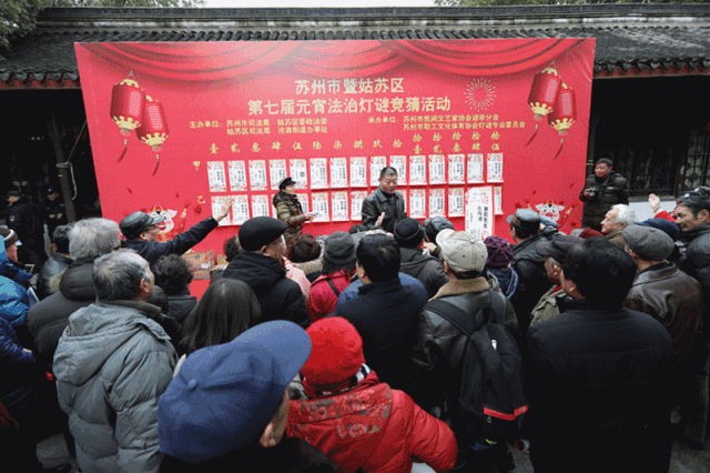 今年的灯谜活动以“运河水韵”、“姑苏古韵”、“法治文韵”为主题,制作了千条灯谜供观众和游客兑猜。
