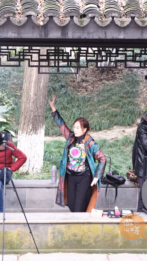 我来唱,你来跳,这位阿姨显然是有戏剧底子的,举手投足之间满是腔调。