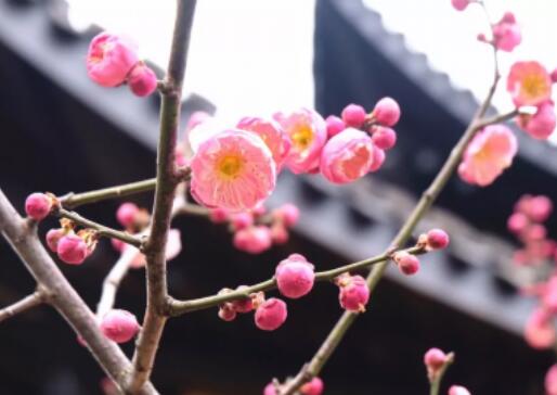 许多红梅还倔强露着花骨朵,只待一剂催化使之绽放。
