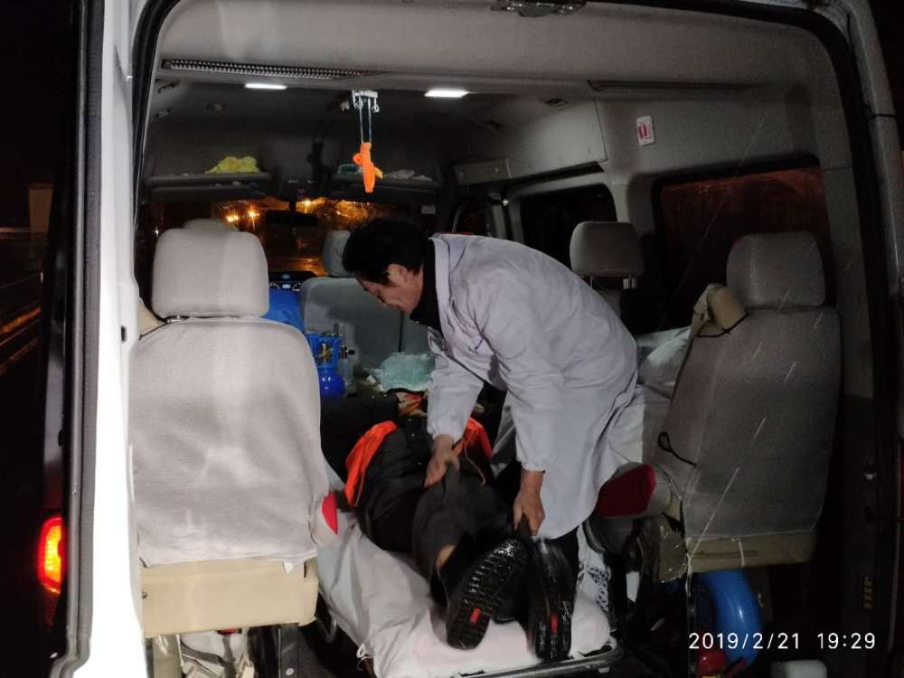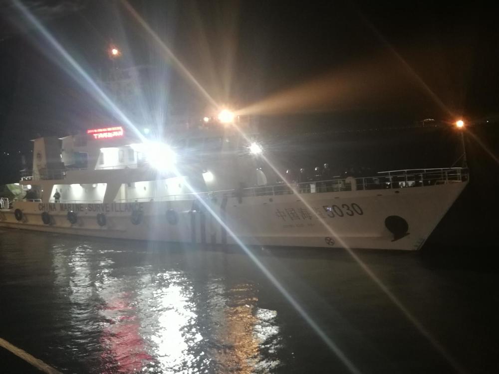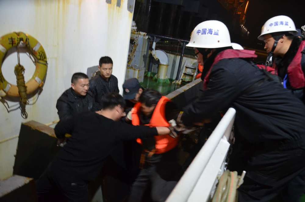 晚上7:30分,中国海监5030船停靠大唐电厂码头后,将患病船员转移到等待在码头的救护车上,立刻送医救治。