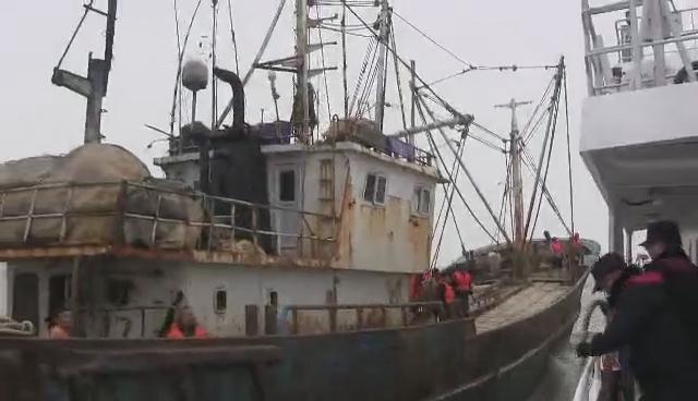 下午3:40分,救援船与苏启渔03118船成功对接,并顺利将患病渔民接上渔政船后,立即返航。