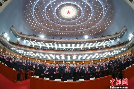 资料图:2018年3月20日,十三届全国人大一次会议在北京人民大会堂举行闭幕会。 中新社记者 刘震 摄
