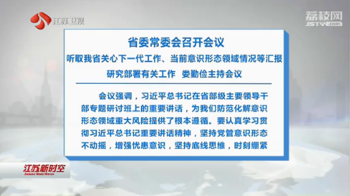 会议强调,习近平总书记在省部级主要领导干部专题研讨班上的重要讲话,为我们防范化解意识形态领域重大风险提供了根本遵循。要认真学习贯彻习近平总书记重要讲话精神,坚持党管意识形态不动摇,增强忧患意识,坚持底线思维,时刻绷紧"防风险"这根弦,严格落实意识形态工作责任制,坚决打赢防范化解意识形态领域风险攻坚战,持续激扬高质量发展主旋律,以新思想为引领不断激发江苏高质量发展的磅礴伟力。