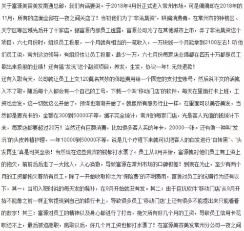 据网友爆料,富源美容美发拖欠员工工资几个月,部分店已经关门,分店员工罢工。
