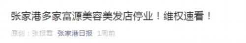 据张家港日报报道:多家富源店的门口都贴着或装修升级或停业的告示。张家港商务局市场秩序运行科工作人员表示,目前已经接到多起有关富源美容美发店关门停业的投诉。