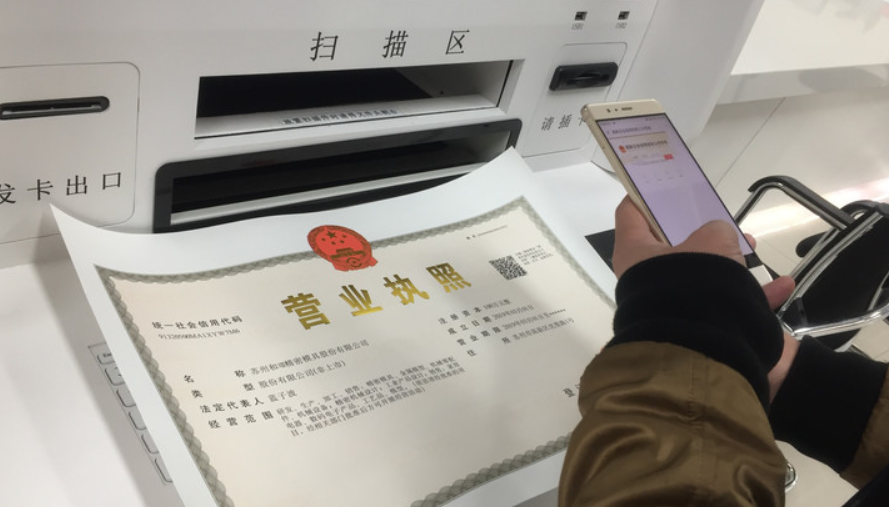 今天上午9时许,苏州和璟精密模具股份有限公司法人蓝子波通过操作不见面审批自助服务系统,拿到了新版营业执照。来自广东的蓝子波原先一直在昆山经营企业,因为与其合作的七八家客户均已搬到高新区,所以他在这里重新设立了公司。他认为新版营业执照升级的二维码功能很有效,“通过扫码可以更加直观了解企业‘家底’,也能增加客户对我们的信任度“。