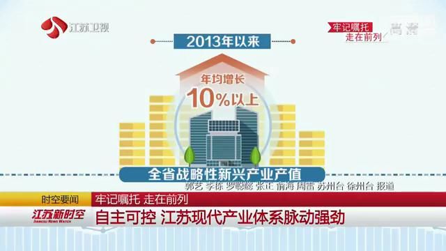 2013年3月8日,习近平总书记在参加十二届全国人大一次会议江苏代表团审议时强调:要深化产业结构调整,构建现代产业发展新体系,使经济发展提高质量、增加效益、增强后劲。牢记总书记嘱托,江苏以创新引领加快产业转型,在推动实体经济提质增效、培育发展新动能等方面持续发力,加快建设自主可控现代产业体系,不断开创高质量发展新局面。