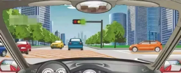 当前方为绿灯时,将车子停在路口的黄色网格线范围内,由于黄色网格线内是禁止停车区域,因此这种情况属于“闯绿灯”行为。