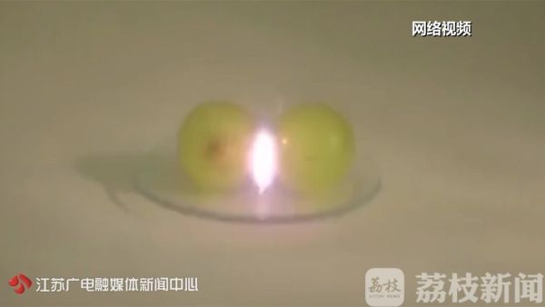 原来,在微波炉运行时,这些水果的接触点会产生强大的电场,这些集中起来的能量被传递给水果里天然存在的钠离子、钾离子等盐类物质,于是产生了等离子体,放出耀眼的光芒……简单地说,要用微波炉产生等离子体,一要有水,二要有盐,三是这种盐水球的大小很关键。形状太大或者太小会使得能量不够集中或是不足,而葡萄大小的水果刚刚好。