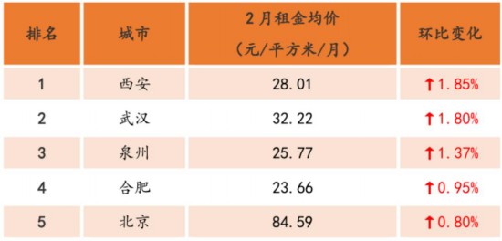 进入春季,也迎来了租房高峰期。1日发布的一份报告显示,春节后租赁市场回暖迹象显现,2月份20城租金均价为每月43.51元/平方米,环比上涨0.13%。其中,重点二线城市租金均价继续回升,从涨跌城市数量来看,20个重点租赁城市中,有12个城市租金均价上涨,其中深圳租金最高,西安涨幅最大。