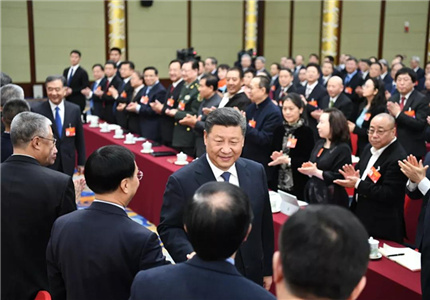 △3月4日,习近平看望参加全国政协十三届二次会议的文化艺术界、社会科学界委员并参加联组会