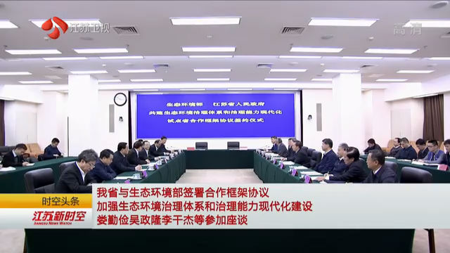 3月15日,省政府与生态环境部在北京签署合作框架协议,共建生态环境治理体系和治理能力现代化试点省。签约前,省委书记娄勤俭、省长吴政隆与生态环境部部长李干杰举行了工作会谈。