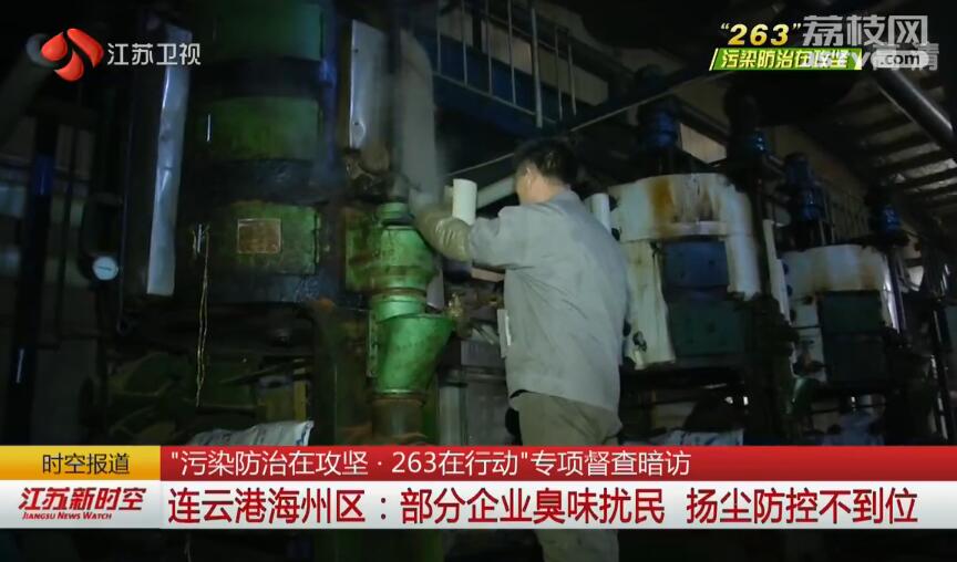 江苏台记者陈超:这里是位于连云港海州经济开发区的恒科路,站在这里我们能闻到一股臭鸡蛋味。顺着这条路往前走,我们来到了这家饲料厂。