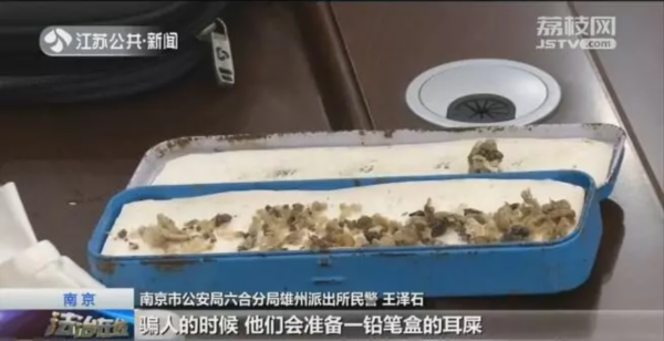 “骗人的时候,会准备一铅笔盒的耳屎。之前从别人耳朵里掏出来的,再放到受害人耳朵里,说是从受害人耳朵里挖出来的,骗取信任和钱财。”民警介绍。
