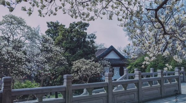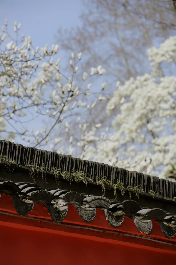 当人们都涌上古迹赏花,清凉山的玉兰反而低调的很,偏偏藏在亭间檐上,仿佛自带地域属性,幽静清冷。