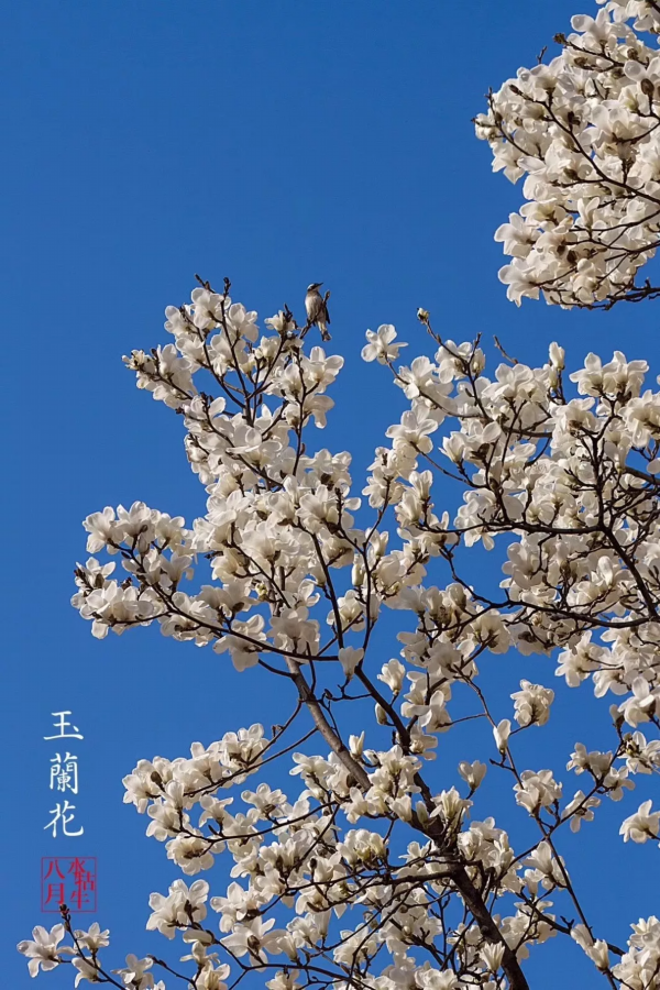 玉兰花迎风摇曳,在春风里尽情绽放,宛若天女散花。