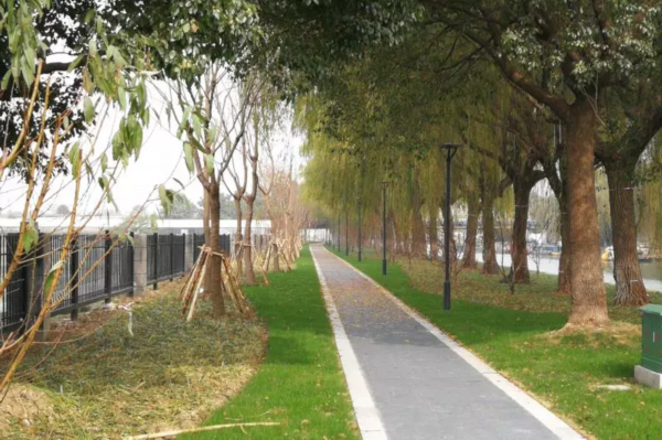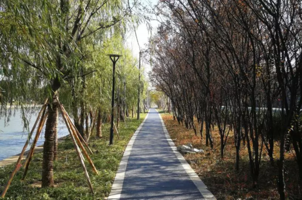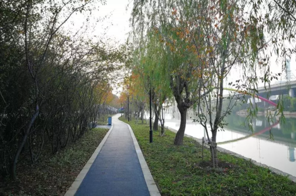 娄江景观步道项目位于娄江南岸,西起东环路向阳桥,向东接金鸡湖环湖步道,总长约5公里。