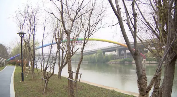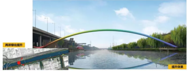 景观步道是通过在娄江南岸防护绿地的基础之上,梳理现状植被、整理地形、新建园路与景观桥梁、设置景观雕塑以及彩绘(高架桥墩及过河管道)等手段改造而成,设有向阳桥东、星杭街东、苏虹西路兰台桥东、星杭街东及金鸡湖步道北侧五个出入口。
