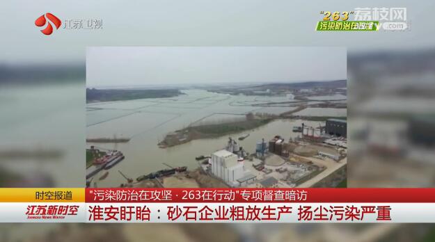 近日,省打好污染防治攻坚战指挥部办公室接到群众举报,在淮安盱眙有成片的砂石企业,紧邻河道,生产经营简单粗放,造成严重扬尘污染。随后,暗访组立即前往现场进行调查。
