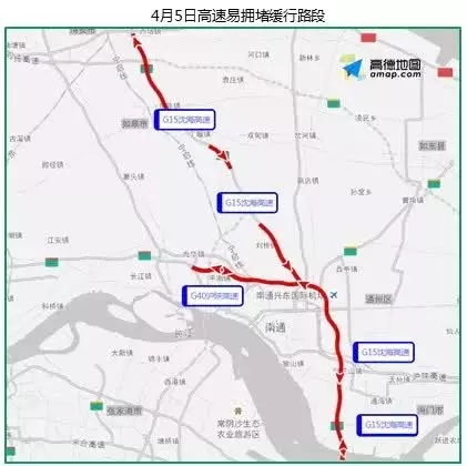 根据高德地图交通大数据预测 ,清明节期间南通市出程4月5日易拥堵缓行的高速有G15沈海高速、G40沪陕高速等。