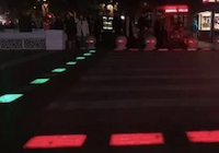 在此基础上,加装的 " 智慧版斑马线 ",更是让这个路口与众不同。这条斑马线白天看与平常的斑马线并无多大区别,只是在斑马线两端和行车停止线前,分别铺设了一条白色警示发光地砖。到了晚上,这些由特殊材料制成的地砖就会自动开启,它们具有防滑抗压额特性,通过与信号灯联动,颜色会随着信号灯颜色变化而变化。在行人过斑马线时,两侧砖块亮起绿色灯光,同时机动车辆停止线前白砖亮起红色灯光。彼此遥相呼应、有规律的闪动。