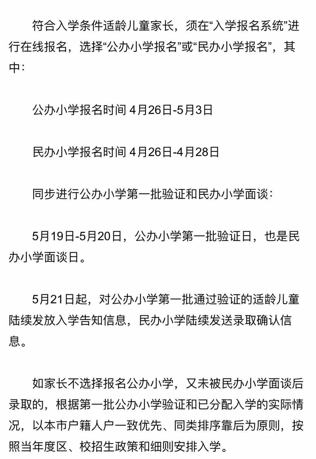 4、按照往年的情况,南京市民办小学先于公办小学招生。民办学校招生结束,公办学校的报名、录取工作才正式启动,未被民办录取者可以继续进入公办小学入学流程。一旦公办民办同步招生后,适龄儿童家长在“入学报名系统”进行在线登记时,就必须做出就读公办、民办意向的选择。今年报名还是四月底五月初吗?静待细则公布。