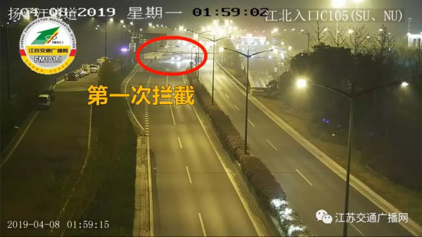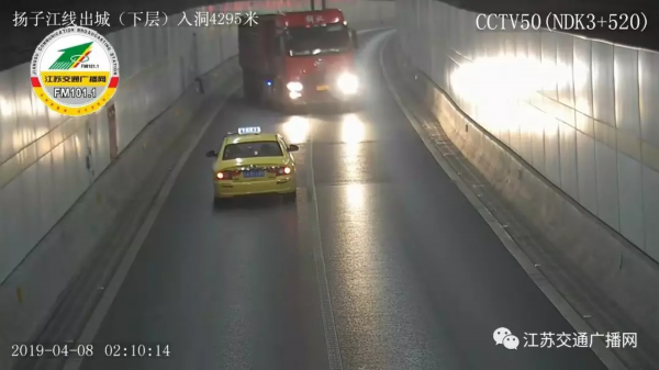 发现这一紧急情况后,南京长江隧道公司立刻安排工作人员前往拦截,并通知南京交警五大队前来处理。