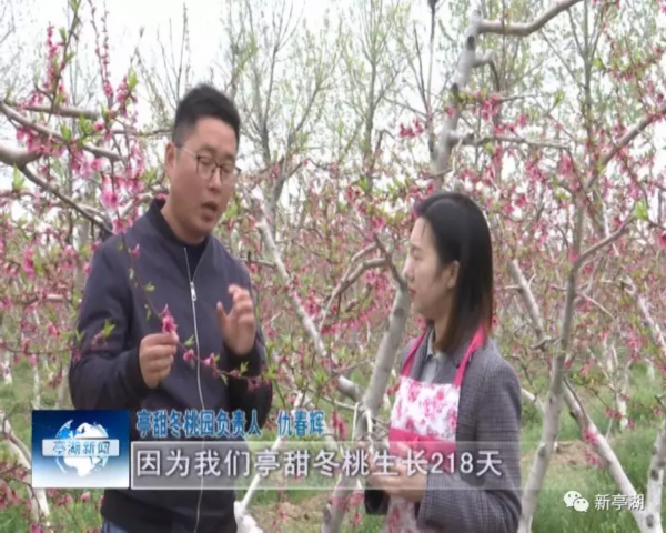 “亭甜”冬桃园负责人仇春辉:今天我们做的主要工作就是给我们桃花进行一个疏花的工作。为什么要疏花呢?因为我们“亭甜”冬桃生长218天,它生长过程和周期非常长,所以说在过程当中,我们要严格控制它的生长环境。疏花我们要把背上枝的花全疏掉,背下大概留5到10公分左右的距离,留一个花朵,因为一个花朵就一个果实,我们是每一棵树上都严格规定它的结果数量,就是保证它218天生长之后,在十月国庆节上市能有一个非常好的口感。