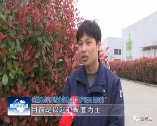 盐城申呈汽车配件有限公司生产经理顾亚明:现在我们在手的订单,目前是以起亚配套为主,正在发展吉利这一块主要订单,以拓展我们今年的目标,所以我们今年给自己公司内部订了一个6000万的指标来完成。