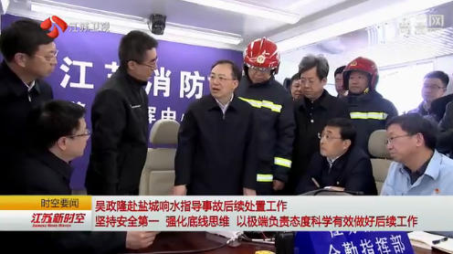 吴政隆还与应急管理部党组成员、总工程师王浩水一行进行工作会商,听取对做好后续工作的意见建议,并对应急管理部等国家部委给予的指导支持表示感谢。副省长费高云,省政府秘书长陈建刚参加有关活动。