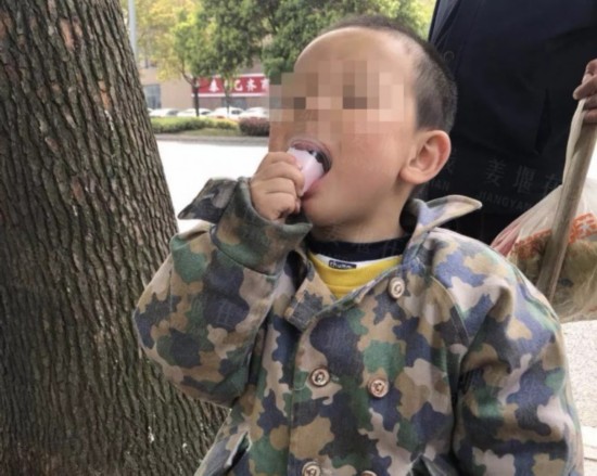朱红小环视四周,并未看到小男孩的家长,便拿出一瓶饮料,哄小男孩说名字和家庭住址。可小男孩因为年龄太小,怎么也说不清楚。不过他一点也不认生,接过旁边一名小哥哥递来的果冻,吃得很开心。