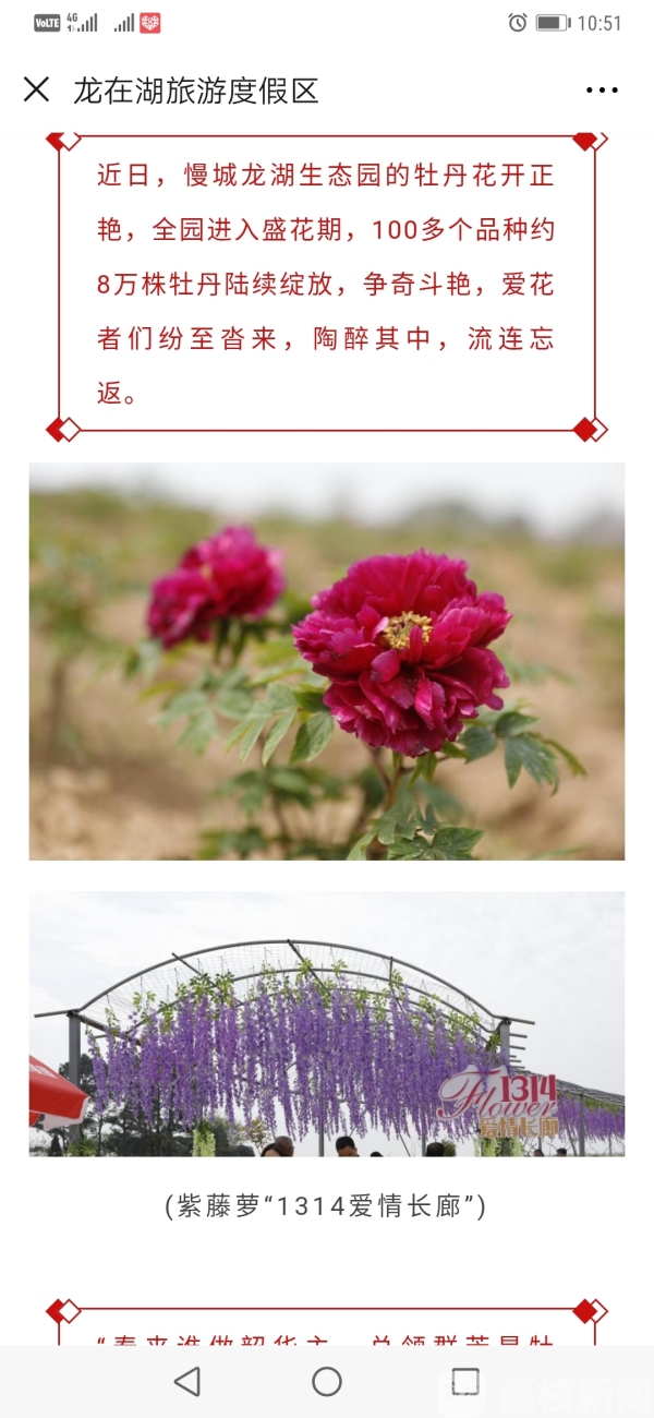 昨天(4月14日),我苏网报道了南京高淳区漆桥街道龙湖生态园景点涉嫌虚假宣传,宣称的“牡丹花海”和“紫藤萝爱情长廊”名不副实。(详情请戳)