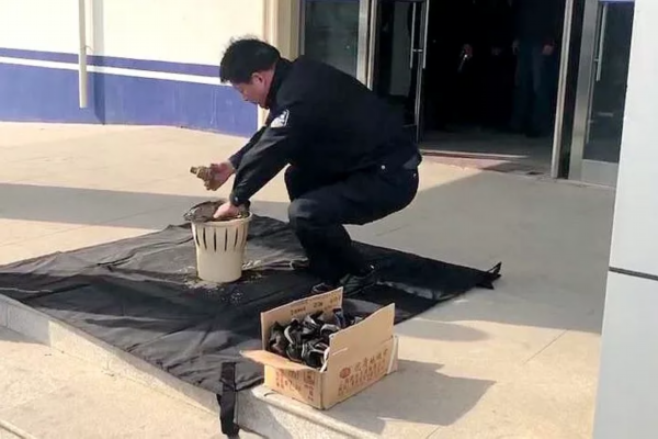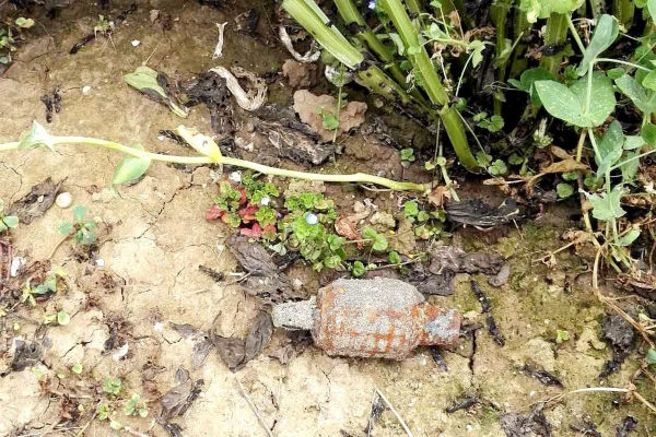 民警对现场群众进行疏散后,将这枚手雷放置在装有沙子的盒子中,转移至派出所。随后,联系启东市公安局巡特警大队前来处置。