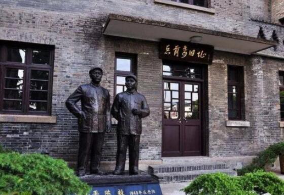 推开两扇铁门,映入眼帘的是郁郁葱葱、整洁素雅的小院,正前方是两层青砖小楼,大门一侧竖立着邓小平、陈毅的铜像。