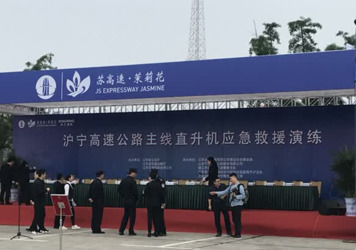 4月24日上午,镇江交警高速第一大队、路政宁沪支队第一大队、沪宁高速宁镇管理处指挥调度分中心等单位在仙人山服务区开展了沪宁高速公路主线直升机应急救援演练。这次演练也是为即将到来的五一小长假做好应急预案。