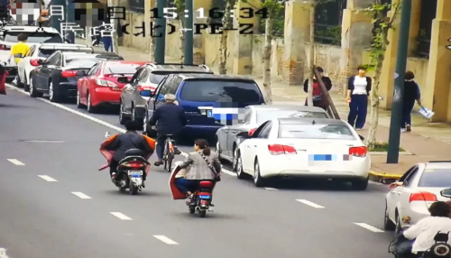 非机动车道上停满了汽车