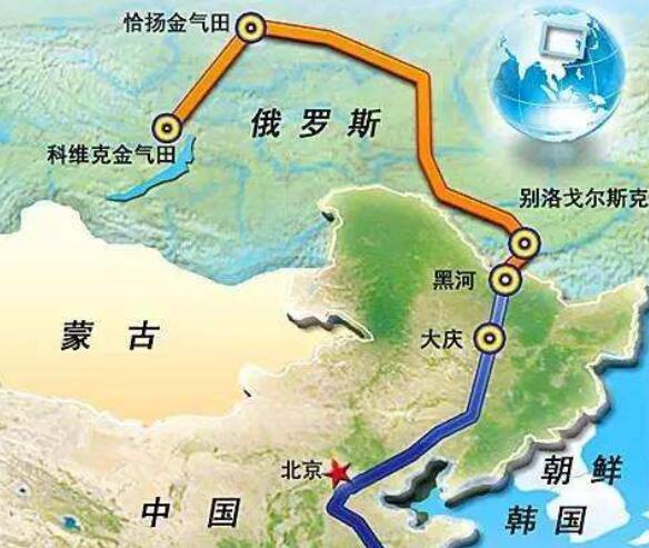 中俄东线天然气管道工程起点位于黑龙江省黑河市的中俄边境,途经黑龙江、吉林、内蒙古、辽宁、河北、天津、山东、江苏、上海,全长3371公里,是我国目前口径最大、压力最高的长距离天然气输送管道。