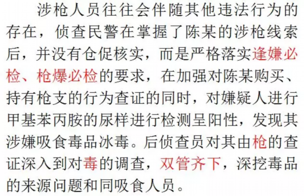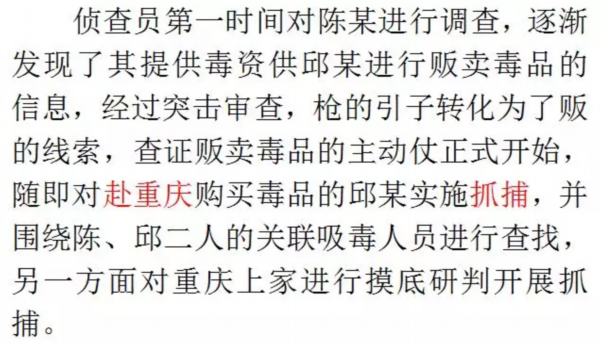 2019年1月县公安局在核查一起网络涉枪线索过程中,发现嫌疑人陈某涉嫌吸食贩卖毒品,后通过多警种的协同配合,以一个涉枪线索为引子、成功侦办了一起贩卖毒品、容留他人吸毒、非法携带枪支案件。